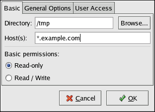 Host(s) — Specify the host(s) with which to share the directory. Refer to Section 22.3.2 Hostname Formats for an explanation of possible formats.